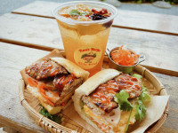 ベトナム人シェフのコンさんが作るベトナムサンドイッチはボリューミーで栄養満点。自家製バンズはさくさく、ふわふわ。メニューはスペシャルバインミーにはじまり、たまごやハンバーグ、豚焼肉などいろいろ。どれも野菜たっぷりでヘルシーかつ食べ応えがあります。ドリンクも手作りジンジャーエールやレモングラスオレンジティーなどオリジナルのテイストがラインナップ。サンドイッチやドリンクのビビッドな色合いは元気をくれて写真映え間違いなしです。