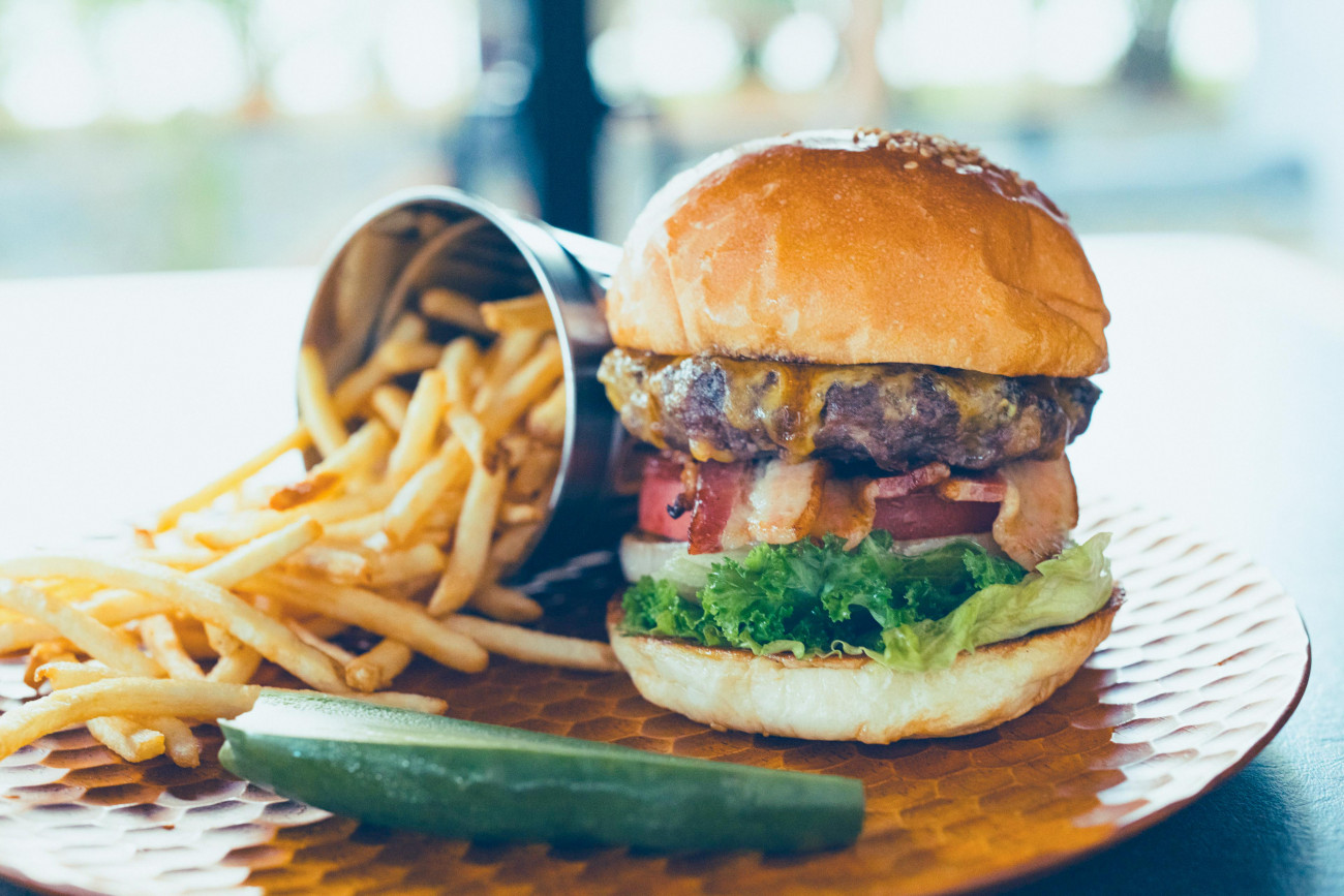 ランチはコースを中心とし、気軽にパスタやバーガーなど