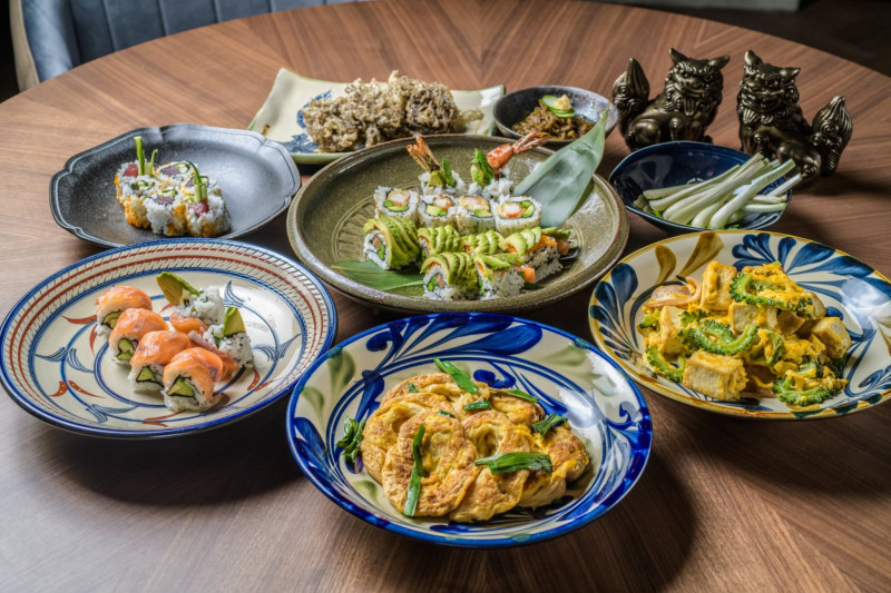 海外リゾートを意識した店内で、本格沖縄料理とカリフォルニアロールなどの創作巻き寿司が楽しめます!