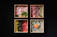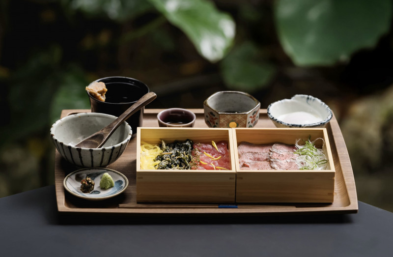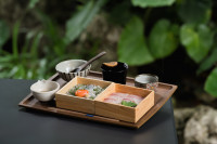 新鮮な食材にこだわった4種のまぶし御膳と、自家製のカツオ出汁をベースとした優しい味わいのお出汁をご自身でやかんから注いでお召し上がりいただける、SHIKAKUの沖縄そばの中からお好みの2種を選びお楽しみいただけます。