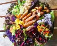 くまキッチンは、沖縄やんばるで採れた無農薬野菜をふんだんに使い、健康的なベジタブル弁当を提供しています。