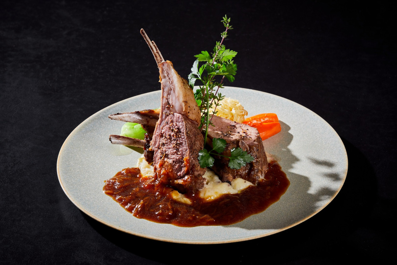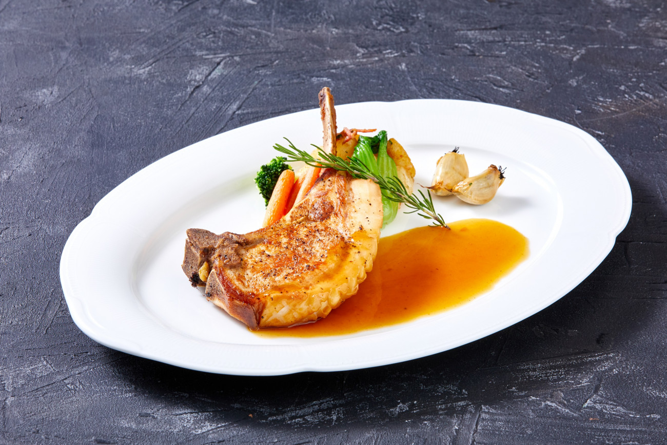 ・キビまる豚の骨付きロース肉の炙り焼きローズマリー香るジュ・ド・ポーク ¥6,000