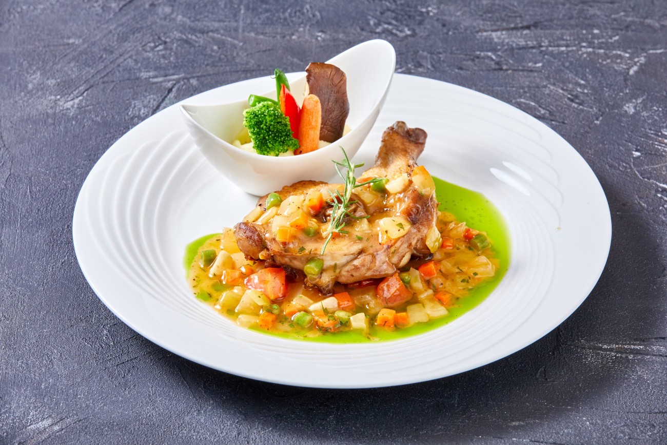 ・やんばる若鶏骨付き腿肉と野菜のシンプルな軽い煮込み ¥5,000