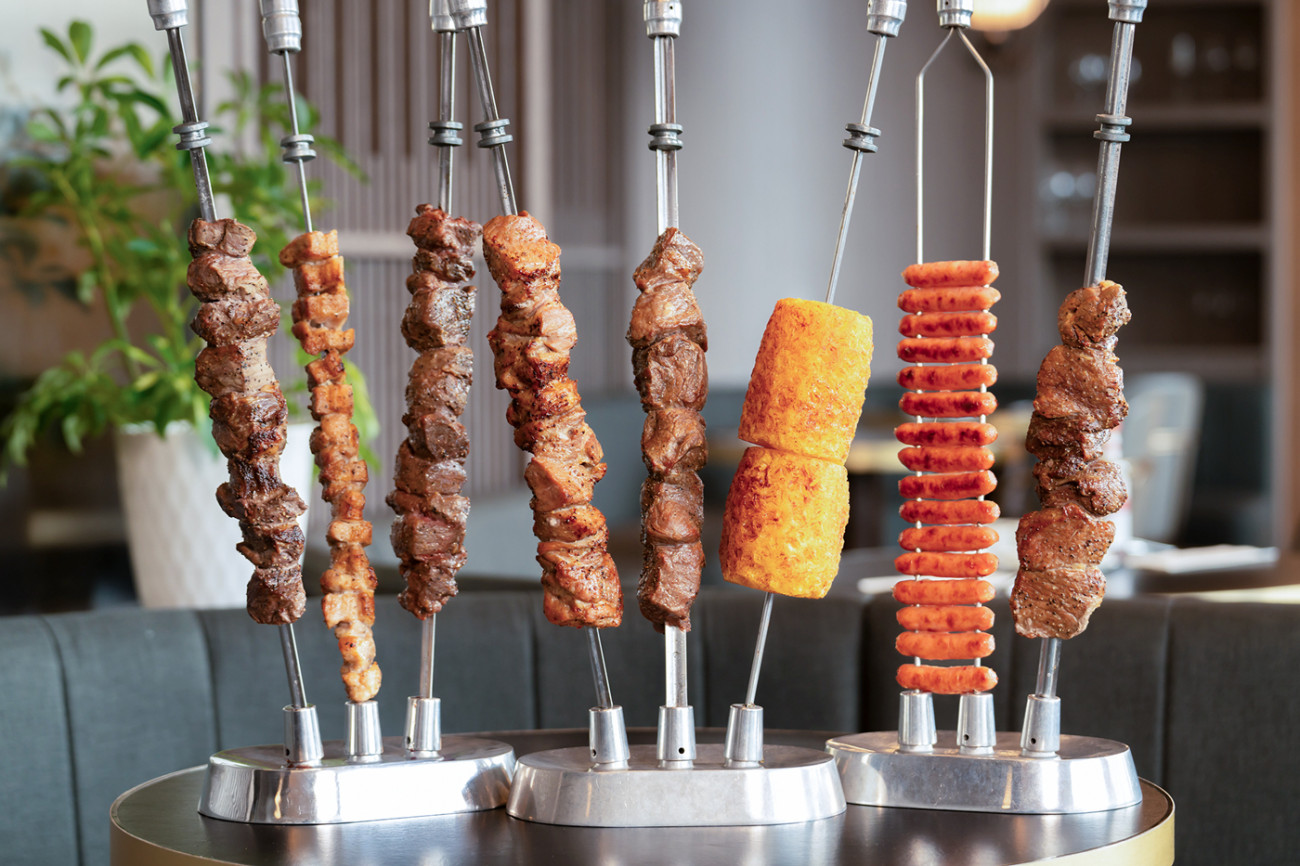 本場シュラスコや選べるメイン料理5種にハーフビュッフェをご用意。