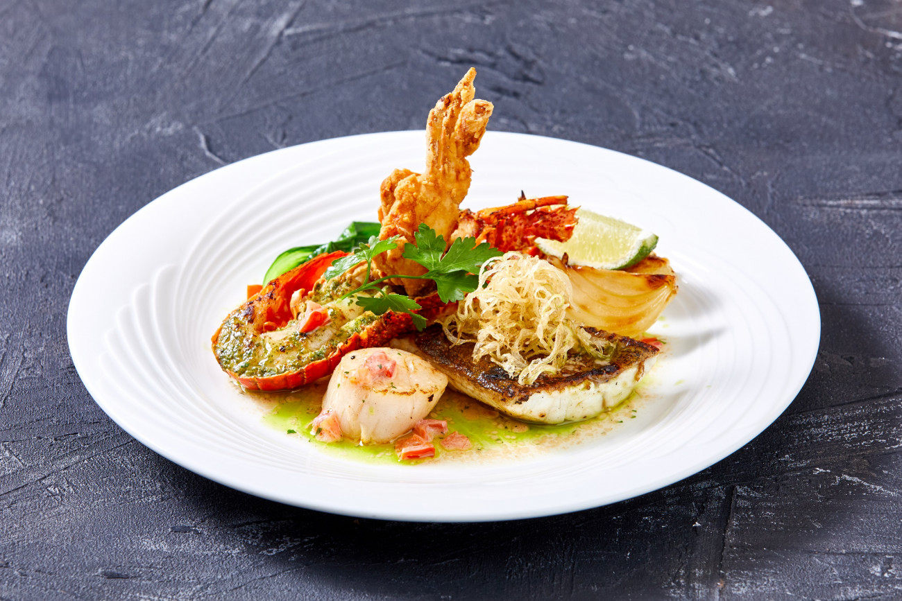・シーフードの取り合わせ三種の調理法県産ハーブを使ったバターソース ¥7,000
