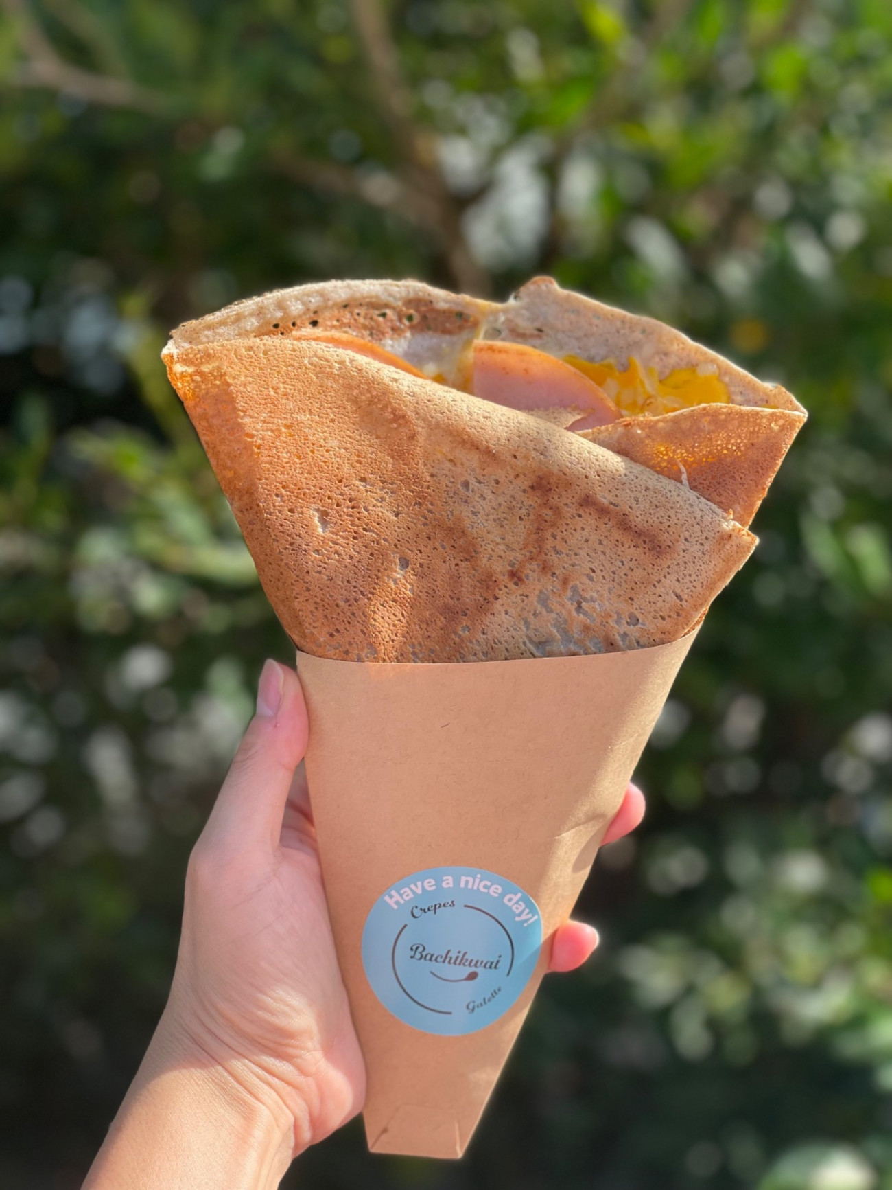 『バチクワイ』は、ハナサキマルシェにある、沖縄県産そば粉を使った本格ガレットと、地元食材を使ったクレープの専門店です。ハンドスタイルで気軽に食べられるガレットから、ゆったり味わえるプレートスタイルまでご用意。ドライブや観光の途中に、南国の風を感じながらテラス席でひと休みしませんか?フードコート(室内)もご利用頂けます。
