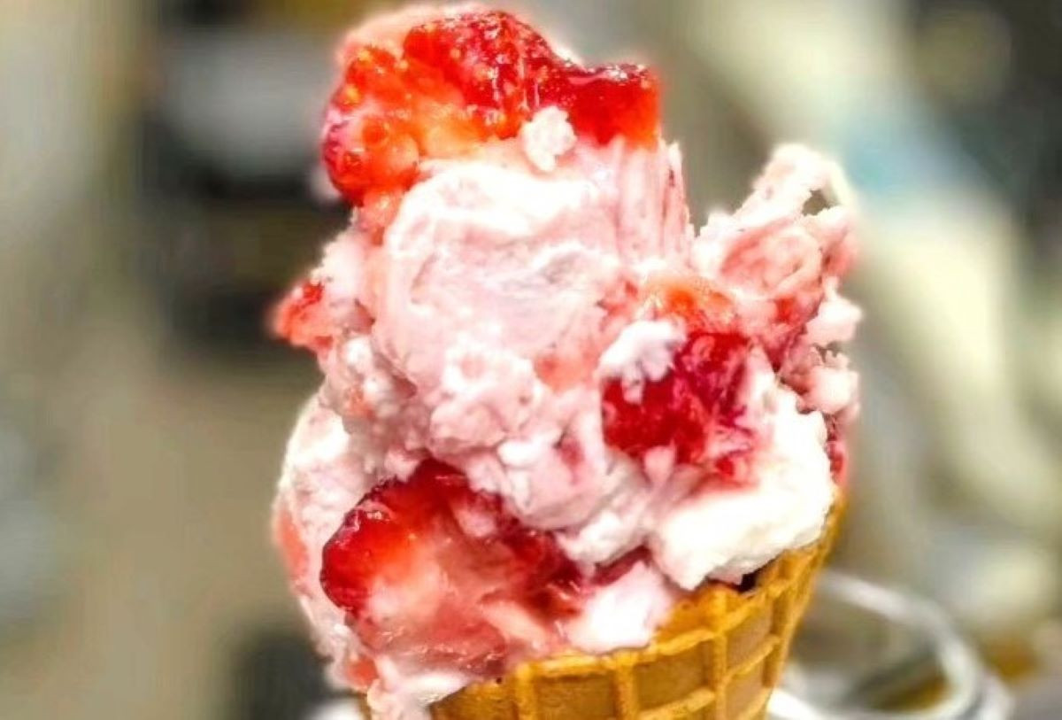 生のフルーツを特殊調理法でアイスと混ぜると、まるでフルー