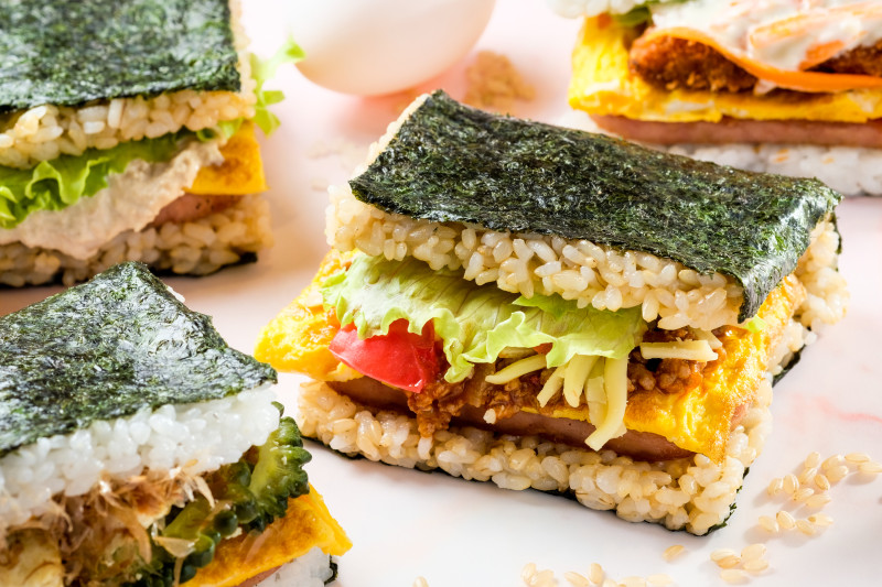 玄米と白米が選べるポークたまごおにぎりが人気。種類も充実してます。