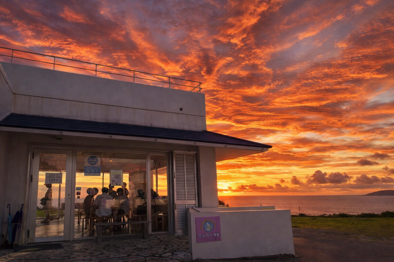 お店は「皆野宿丘(みなのしゅくおか)」と呼ばれる高台にあり、美しい石垣の海を一望できる絶景スポット。ジェラートを味わいながら、心ほどけるひとときをお楽しみください。
