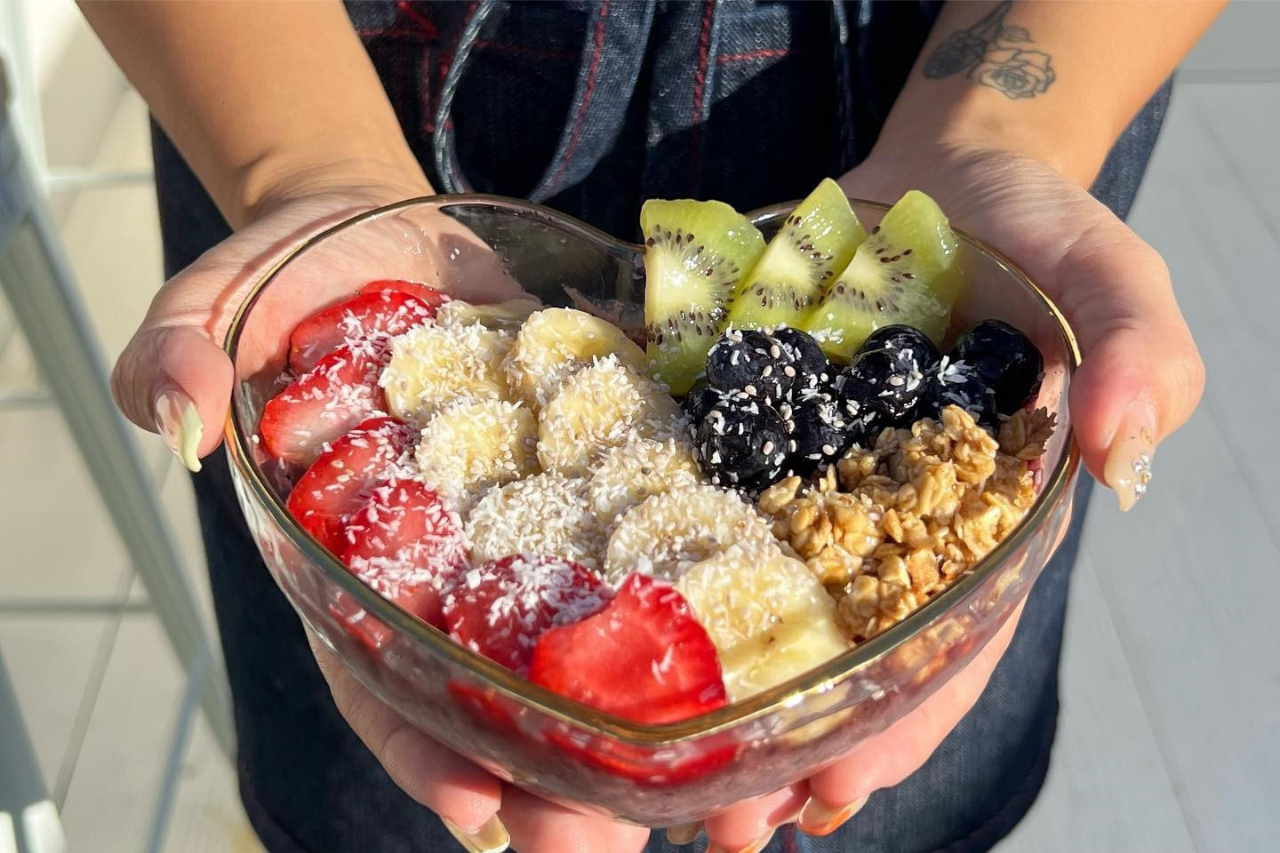 人気No.1メニューの「アサイーボウル」は、フルーツの酸味とハチミツの甘さ、そしてザクザク食感のグラノーラが相性抜群の一品。見た目のかわいさだけでなく、しっかりと食べ応えのある当店自慢のメニューです。