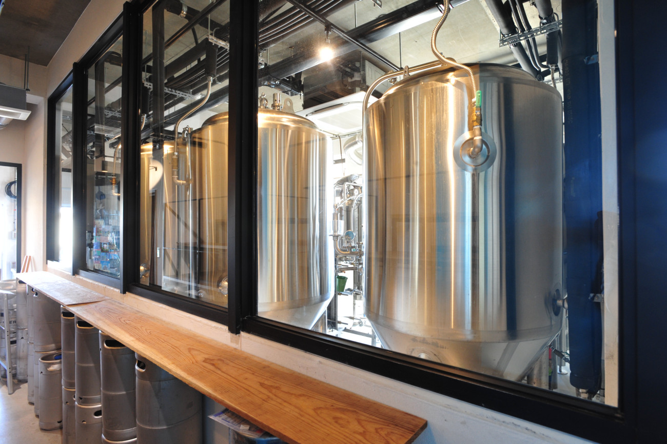 ひとつひとつ手作りで造るビールは、できたてならではの香りと味わいが魅力。タップルームには9種類のビールタップがあり、いろいろな種類のビールを眺めながら楽しむことができます。
