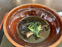 「多良間そば」のスープは、多良間島近海で潜り漁により獲れたイラブチャーやミーバイなどの突き魚のアラ出汁に、島で育った「マクル豚」の頭豚骨、カツオ出汁を合わせた奥深い味わいが特徴。
