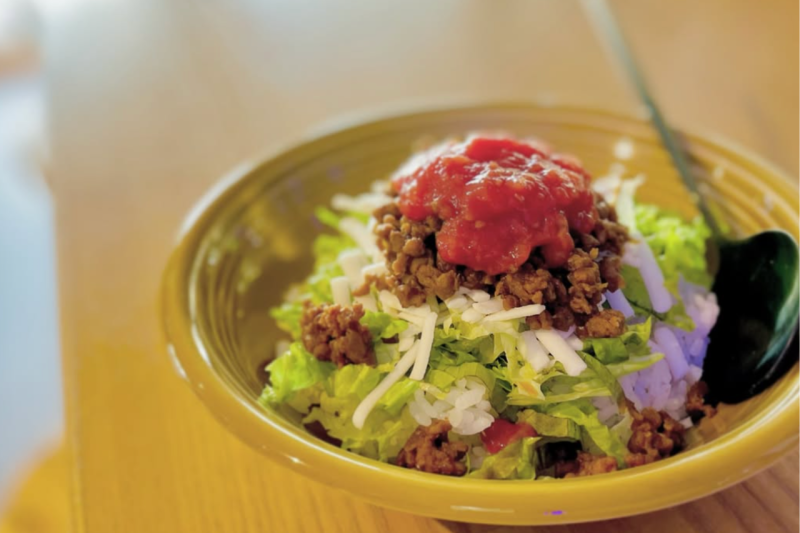 また、動物性食材不使用のヴィーガン対応「特製タコライス」や、紅芋を練り込んだグルテンフリーの紫色トルティーヤで味わうオリジナルタコスなど、ここでしか出会えないメニューも魅力です。