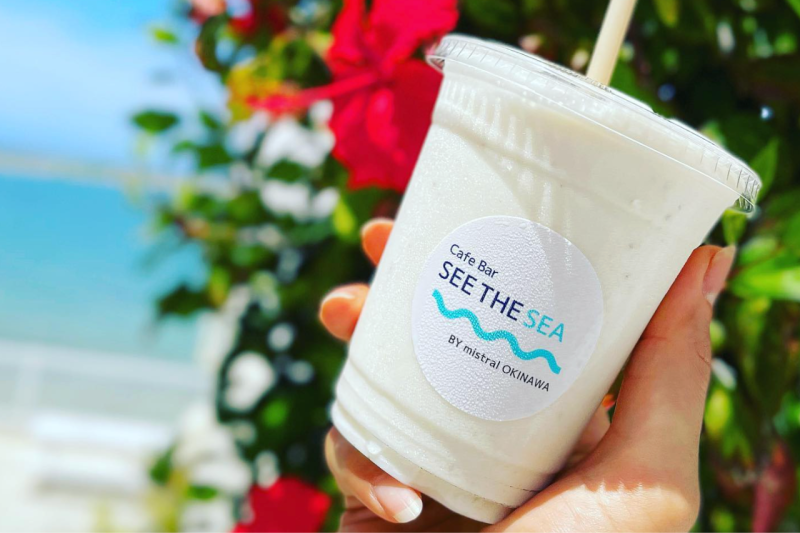 Cafe Bar SEE THE SEAは、那覇空港からほど近い瀬長島の観光スポット 瀬長島ウミカジテラス 内にあるカフェバーです。
