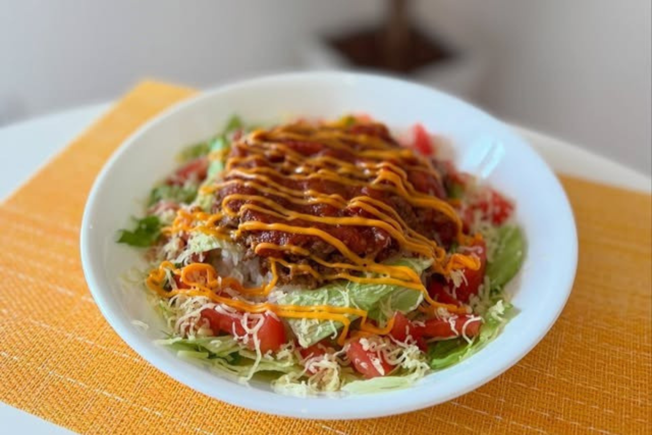 ランチタイムには、スパイシーなタコミートにチーズと野菜をたっぷり合わせた、ボリューム満点のタコライスも定番メニューとして好評です。