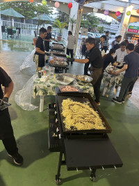 準備・片付け不要で、大人数(最大約300名)にも対応し、テントや屋根付きスペースがあるため天候に左右されにくい作りになっています。