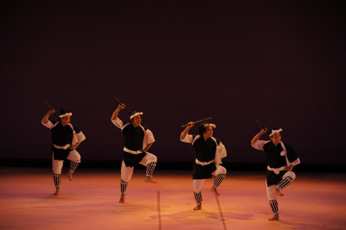 上野村に古くから伝えられてきた民俗芸能の棒振り。勇ましく迫力にみちた動きで棒を振ることにより、悪を払いユウ(福)を呼び込みます。撮影:仲程 長治 氏