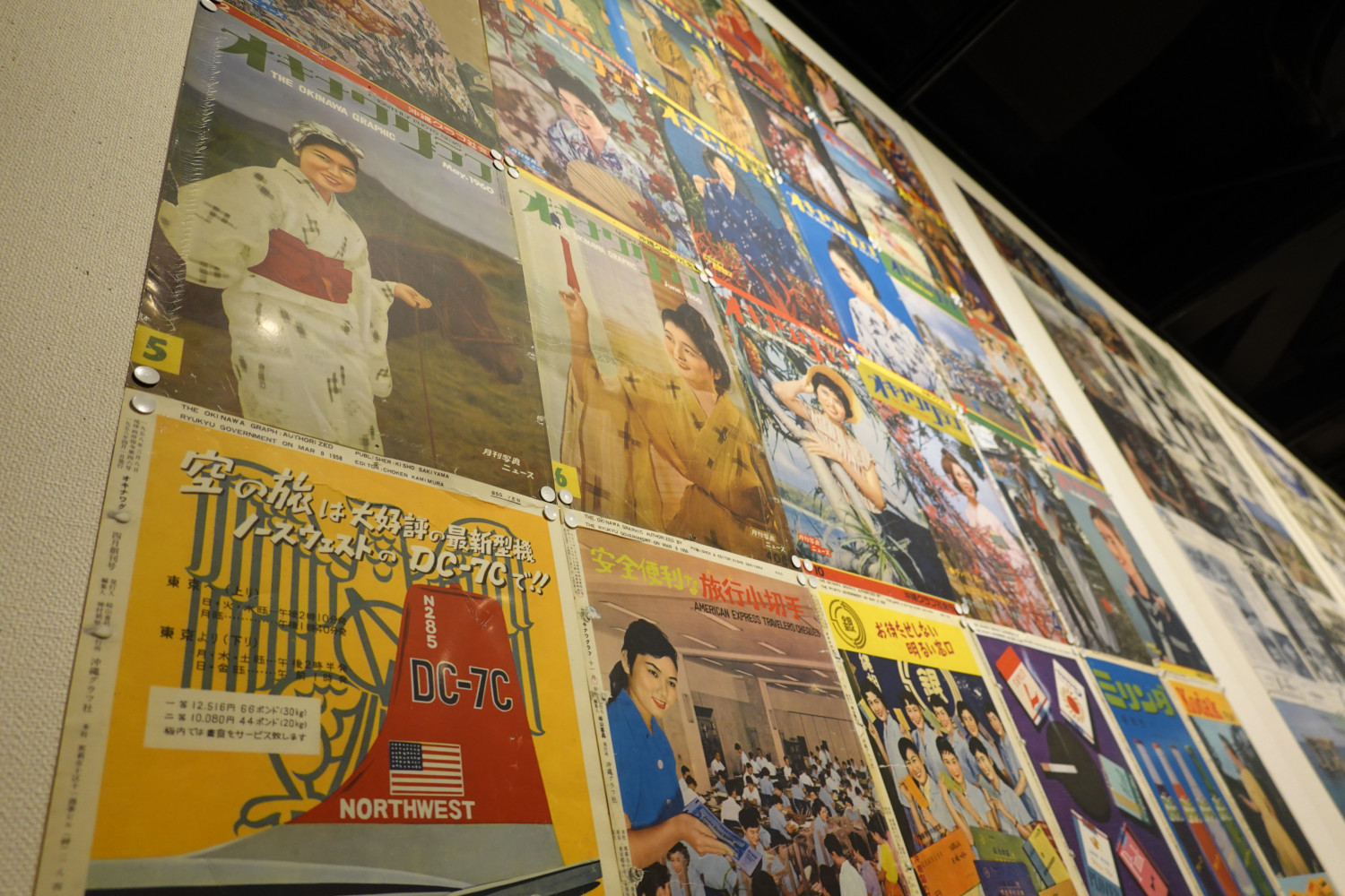 沖縄の歴史とともに独自の進化を遂げてきた沖縄音楽の貴重な記録となるアナログレコードや、戦後沖縄の歴史を記録する沖縄唯一の月刊写真誌「オキナワグラフ」の誌面等、50年を彩ってきた様々なジャンルの表現者たちの作品が展示されていました。
