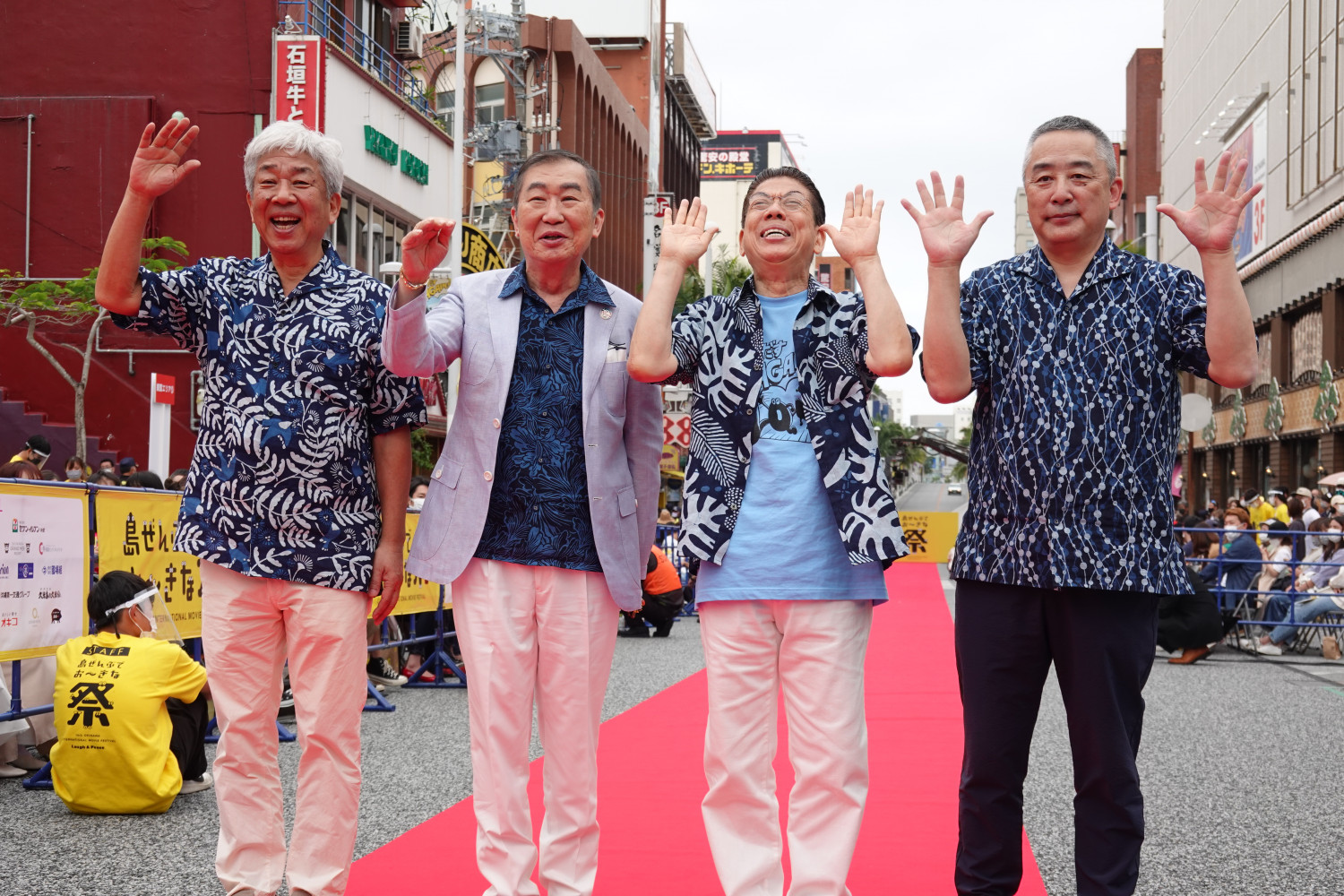 レッドカーペットのトリには、かりゆしウェアを身にまとった桂文枝さん、西川きよしさんが登場しました!!