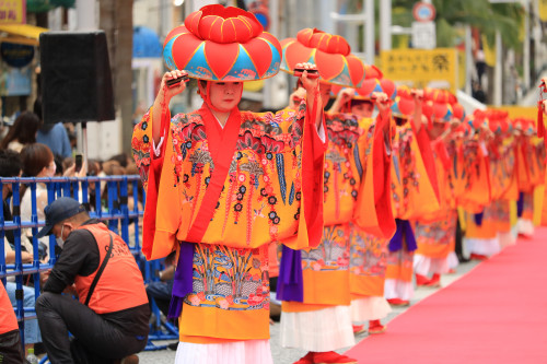 オープニングパフォーマンスでは、花笠をかぶり、四つ竹を打ち鳴らし踊る琉球古典舞踊「四つ竹踊り」が披露されました!艶やかな紅型衣装と優美な舞が印象的(^^♪