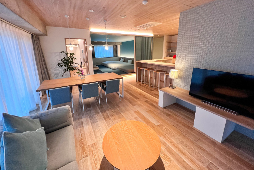 デラックススイートはベッドルームが2つあり、キッチンにはカウンターが付いていて広々としたお部屋になっています!