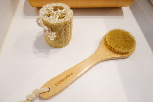 竹で作られた歯ブラシやブラシ、へちまのボディースポンジなど環境にやさしいアメニティがそろっていました♪