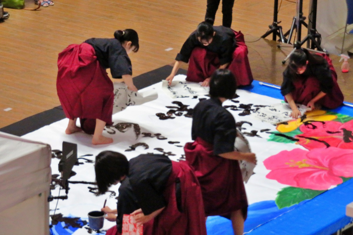 トップバッターは、小禄高校/書道部の皆さんのよる書道パフォーマンスです^^