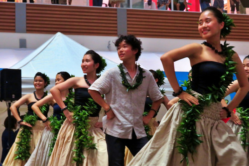 つづいては、北山高校/ハワイアンフラ部with Hālau Hula Uʻiによるフラパフォーマンス!
