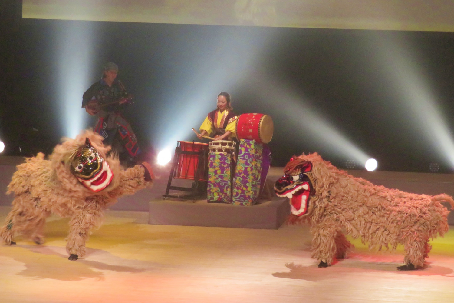 第1章は「新時代の息吹」。琉球舞踊や民族芸能の獅子舞を三線や太鼓のダイナミックなアレジンで舞います!