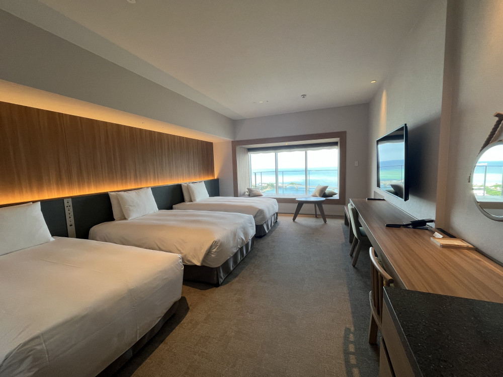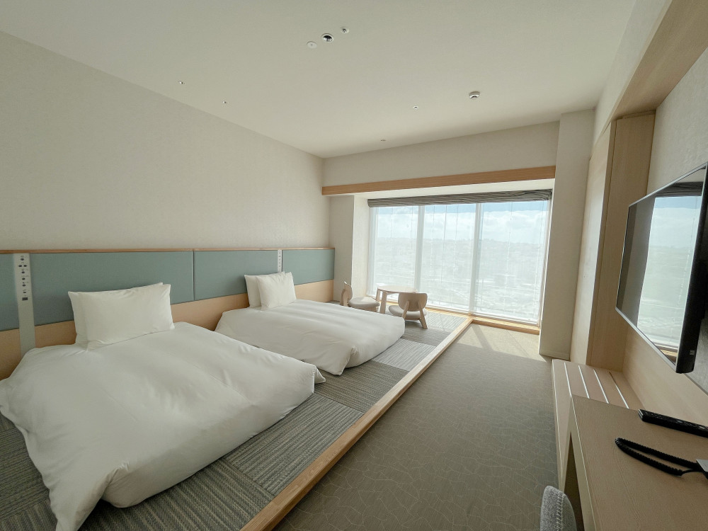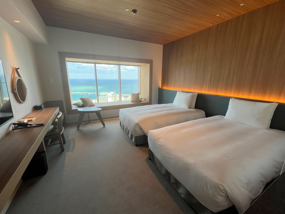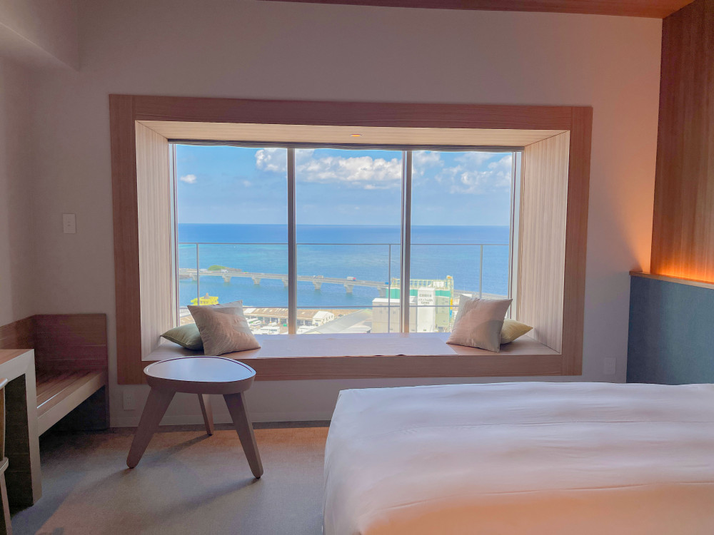 名前の通り、ウィンドーシートを設えたお部屋で、窓からは沖縄の青い海や空、浦添の街並みなどを眺めることができます。また、オーシャンビューの客室からは、水平線に沈むサンセットも見ることができますよ♪