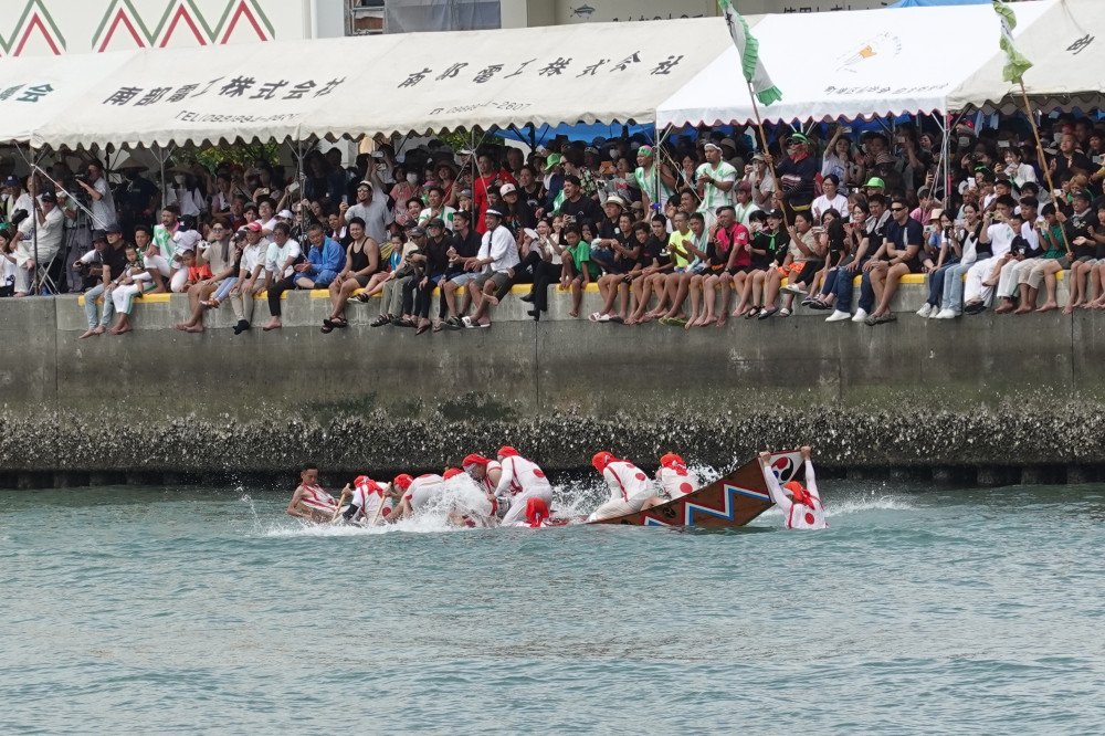 続いては、糸満ハーレーで一番の見どころでもある「クンヌカセー(転覆競漕)」が行われました!