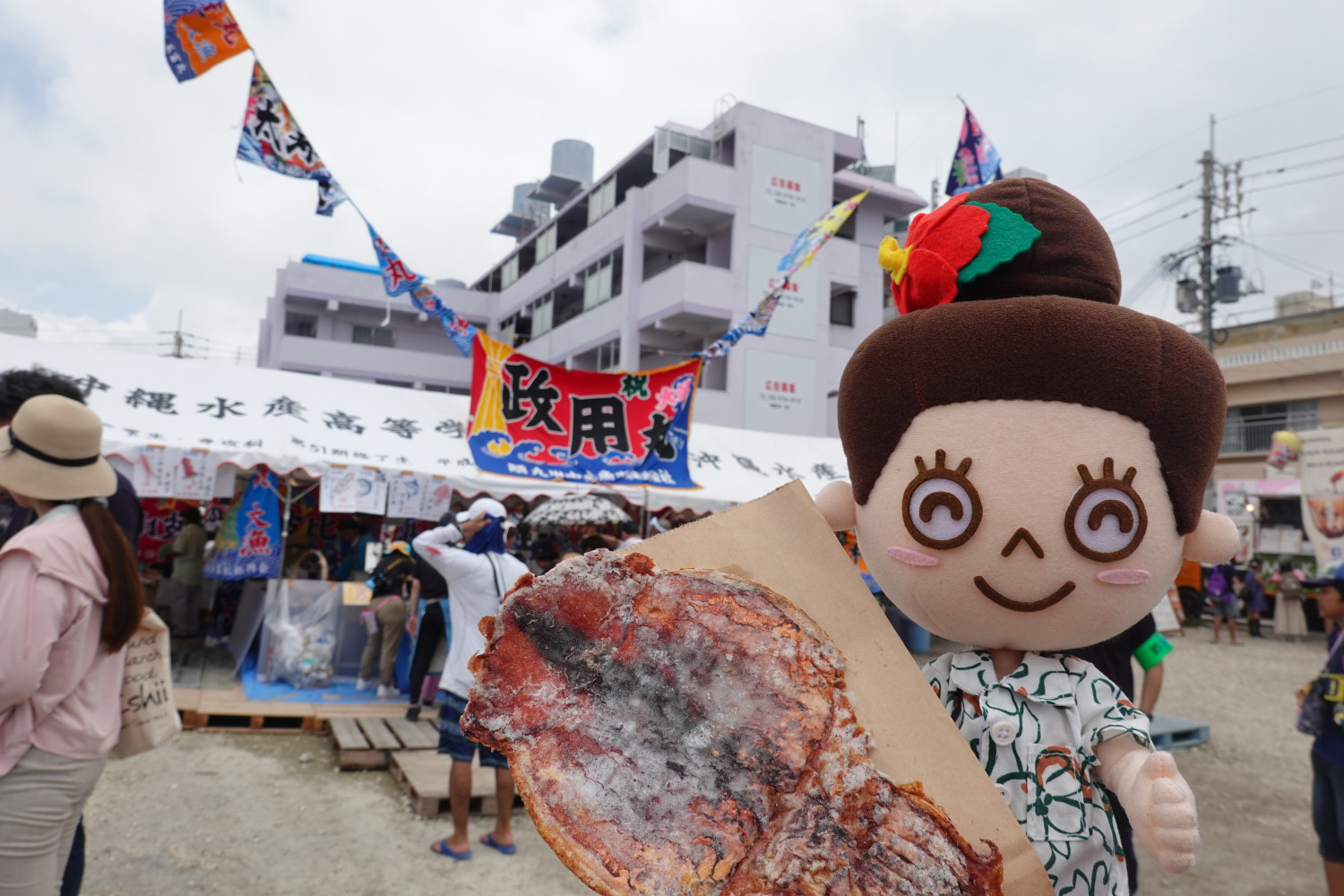 小腹が空いたので会場内にあった屋台でインパクト抜群な「糸満産トビイカのプレス焼き」も食べました♪