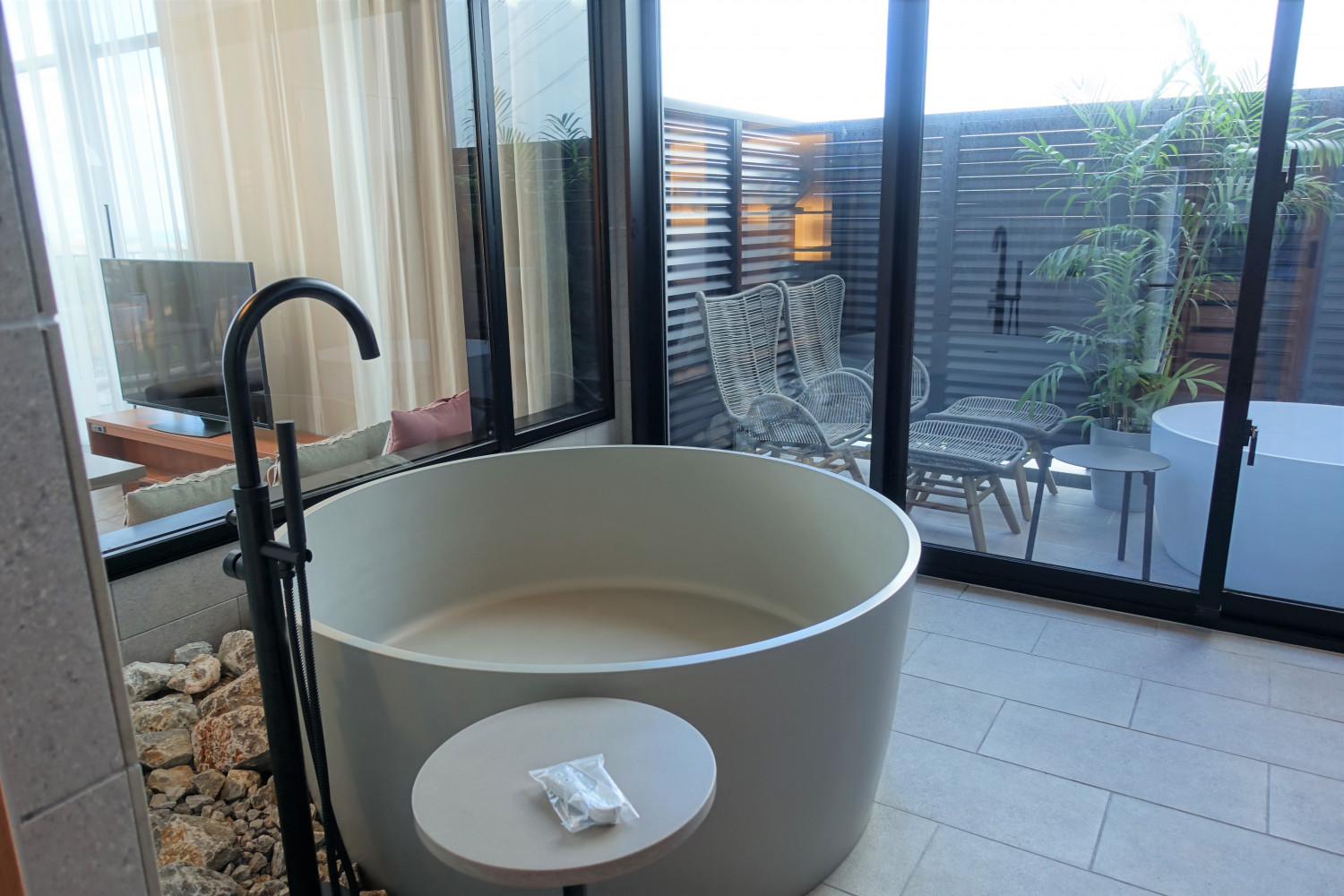 ベランダには水風呂もあるので、サウナ後に”ととのう”ことができます(≧▽≦)