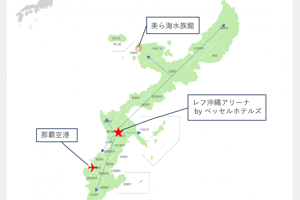「レフ沖縄アリーナ by ベッセルホテルズ」は沖縄自動車道「沖縄南IC」から車で1分の場所にあります♪ここを拠点にし、沖縄自動車道を使い沖縄本島北部観光・南部観光をすることもできますし、西海岸・北谷へは車で約15分、東海岸・海中道路へは車で30分で行ける好立地にあります(≧▽≦) また、スポーツ興行やコンサート、展示会などを開催する「沖縄アリーナ」へは徒歩5分と至近です(^o^)