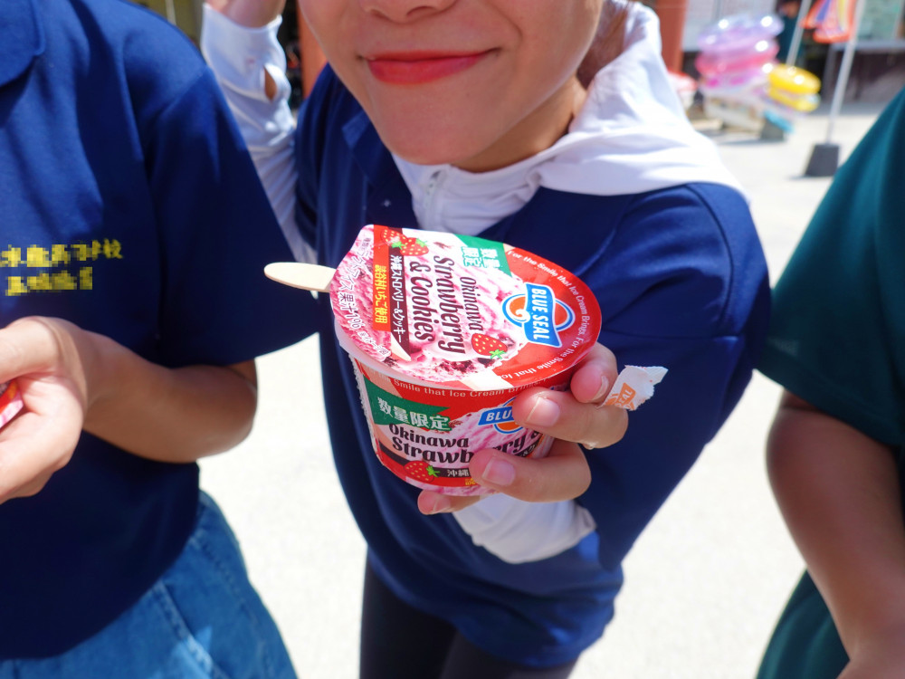 沖縄の太陽の下いただくブルーシールアイスクリームは最高!