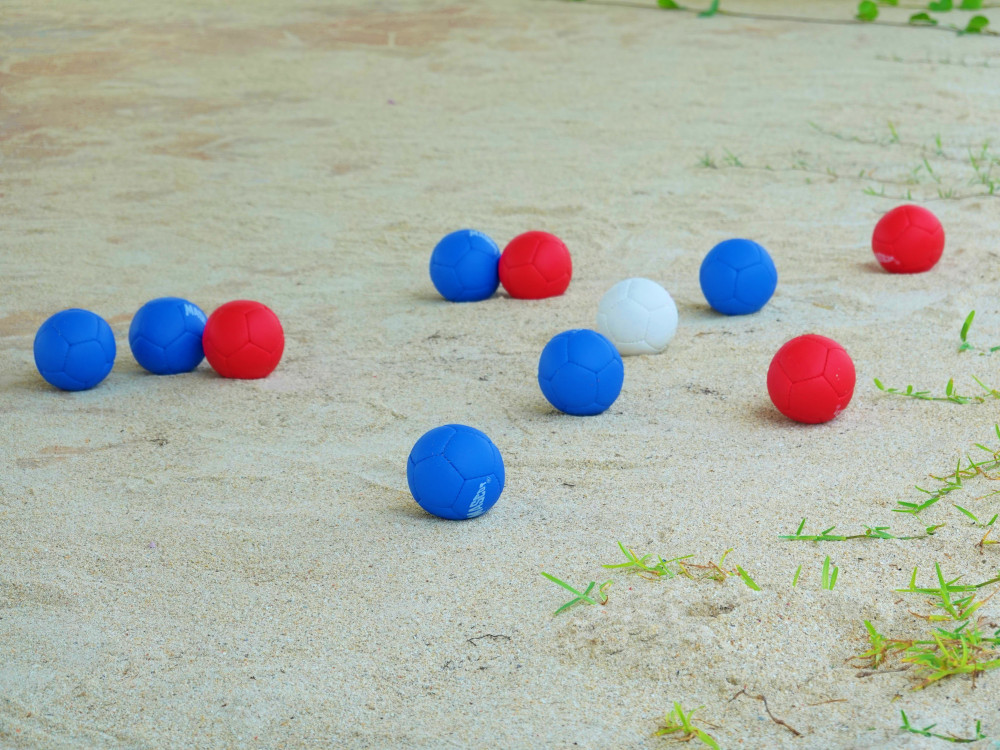 ジャックボール(目標球)と呼ばれる白いボールに、赤・青のそれぞれ6球ずつのボールを投げたり、転がしたり、他のボールに当てたりして、いかに目標球に近づけるかを競うゲームです。