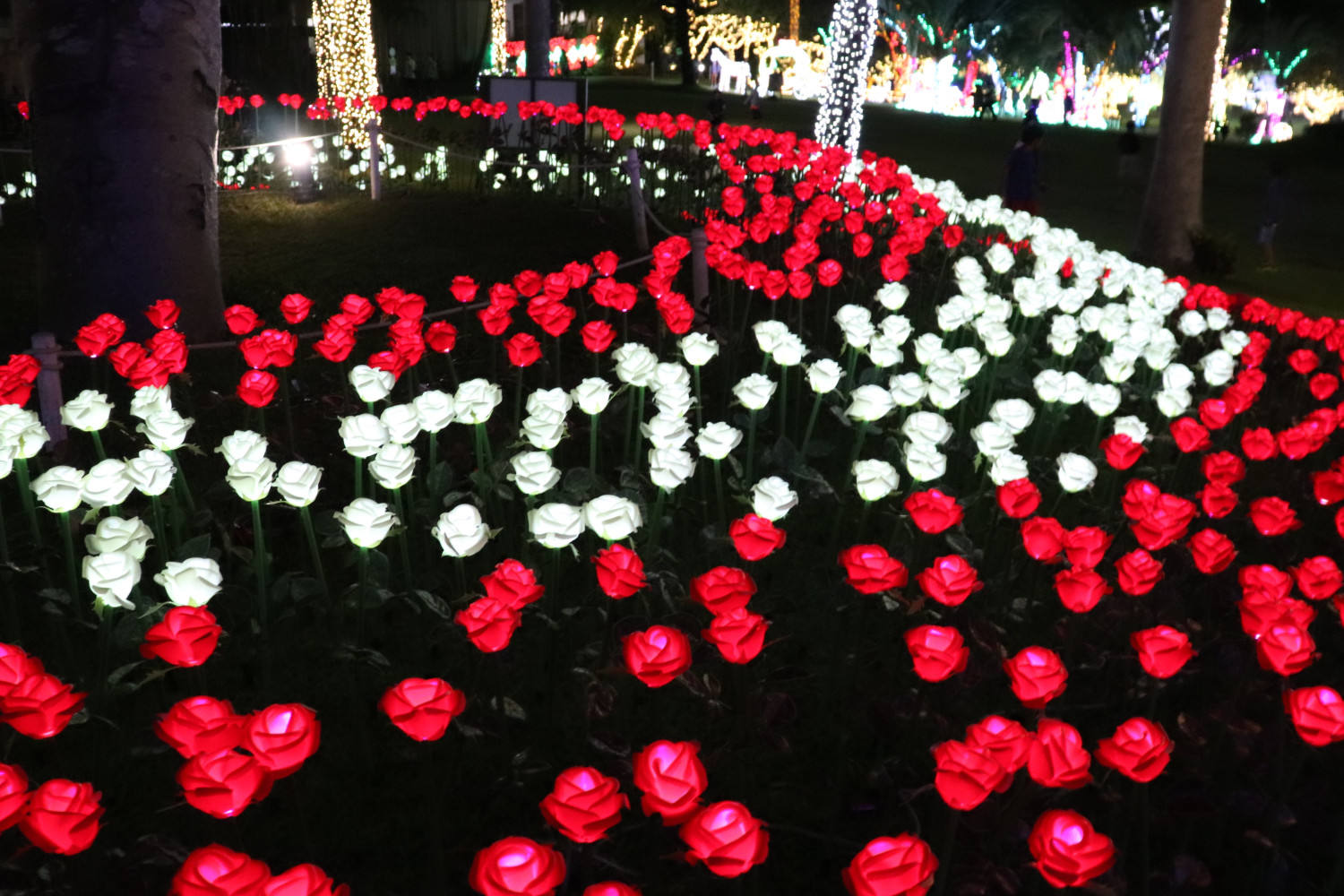 続いて目に入ってきたのは「フラワートンネル」で、幻想的な雰囲気が漂っていました♪よく見てみると一つ一つのライトが花の形をしており、とっても可愛かったです(≧▽≦)