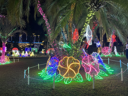 東南植物楽園の広大な敷地内がカラフルで煌びやかな光に包まれていて、とても綺麗で感動しました!エリアによって異なる世界観のイルミネーションが施されているので、それぞれのエリアの魅力を楽しむことができました^^皆さまも、涼しい気温の中、綺麗なイルミネーションを眺めながら、ゆったり夜のお散歩を楽しんでみてはいかがでしょうか♪大人も子供も楽しめる”沖縄南国イルミネーション”は2024年5月26日(日)まで開催されていますので、ぜひ足をお運びください(≧▽≦)