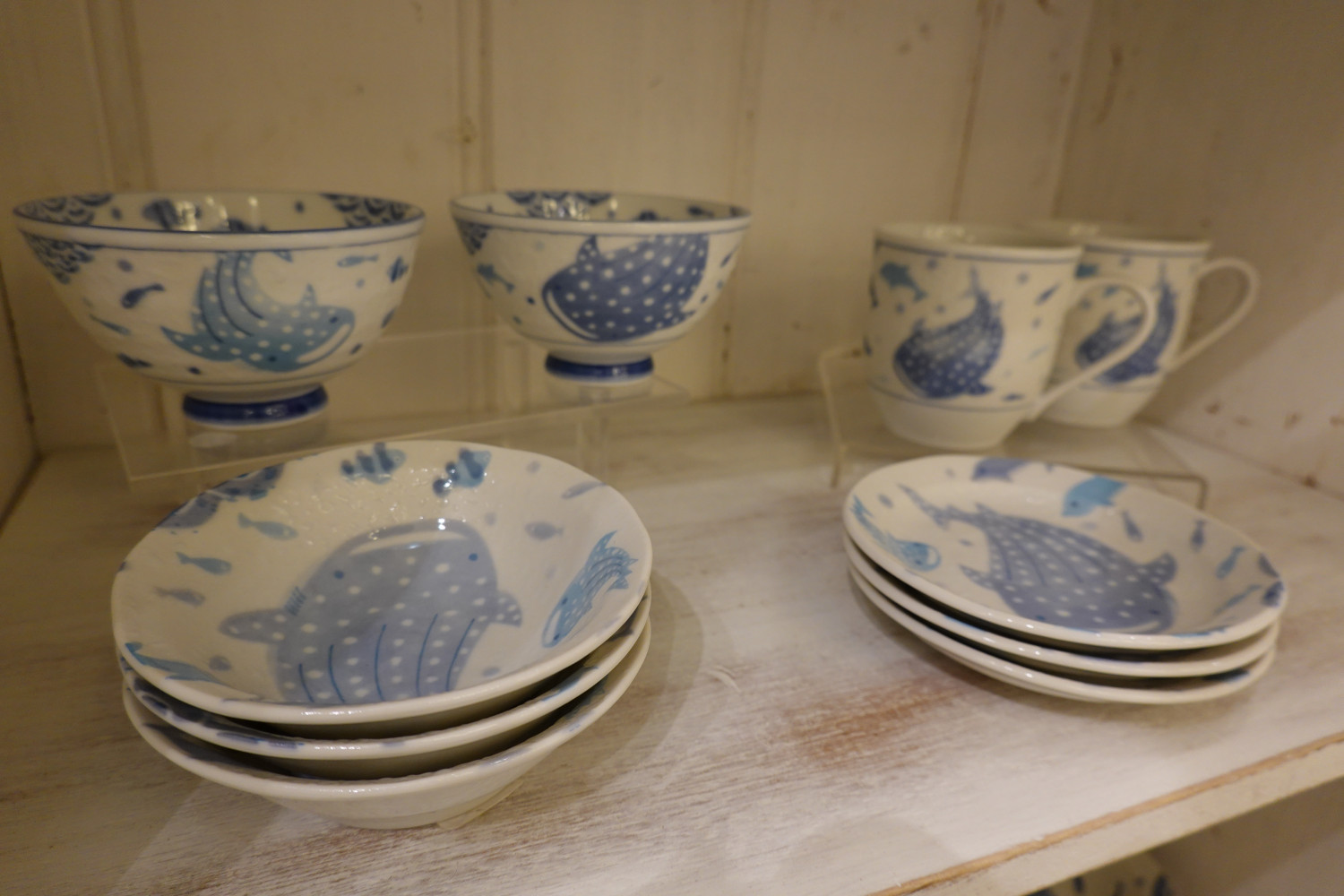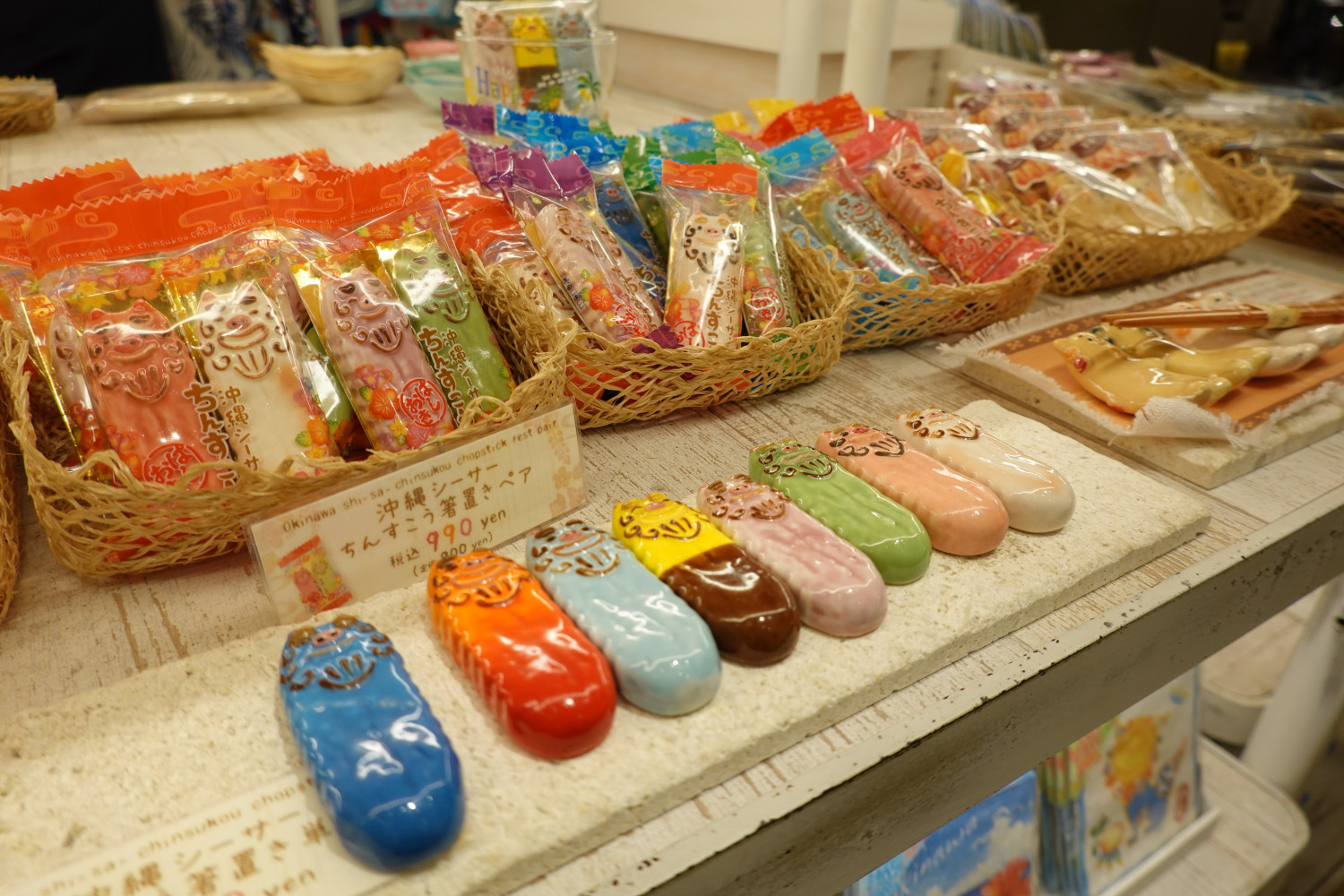 シーサー×ちんすこうやジンベイザメの箸置きや、パイナップル、ジンベイザメのお皿やグラスなども販売されていました♪ぜひ足を運んでみてはいかがでしょうか(≧▽≦)