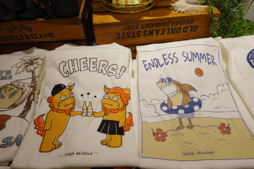 散策中、気になるお店を発見したので入ってみました!店舗名は「Splash Okinawa Mihama Market」でTシャツや雑貨、アクセサリーなど種類豊富な商品が販売されており、沖縄らしさで溢れていました!沖縄土産にもぴったりです♪