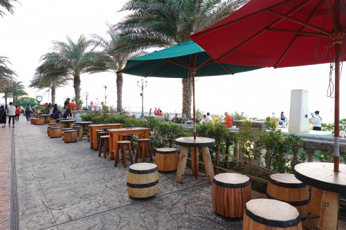 サンセットビーチの近くには、レンガと黄色い色味の組み合わせがとてもお洒落で、ロンドンの街中を感じさせる橋がありました!!街灯もとてもお洒落で、ヨーロッパにワープした気分に♪橋の周辺は穏やかな時間が流れており、海を眺めながら友達同士やカップルがおしゃべりを楽しんでいましたよ!
