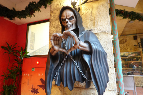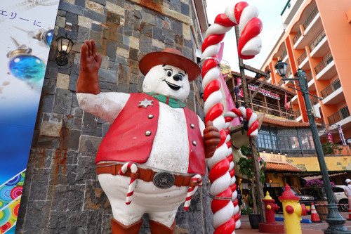 デポセントラル内や周辺にも巨大なモニュメントがたくさん!!赤と白の杖を持ったワイルドな雪だるまや、可愛いポーズをした死神、ユニークなポーズをしているガイコツなど個性豊かなモニュメントばかりなので、どれと写真を撮ってもユーモア溢れる一枚になります!(^^)!