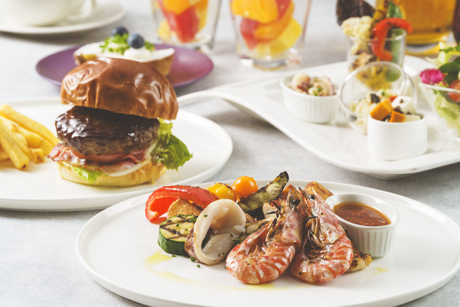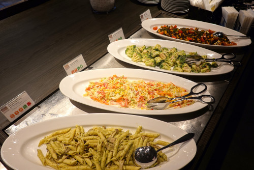 ランチタイムはハーフビュッフェスタイルで、シェフ厳選の6種類のメインプレートから好きな1品+ビュッフェ(前菜・サラダ・スープ・パン・フルーツ・スイーツ・ドリンク)になります。