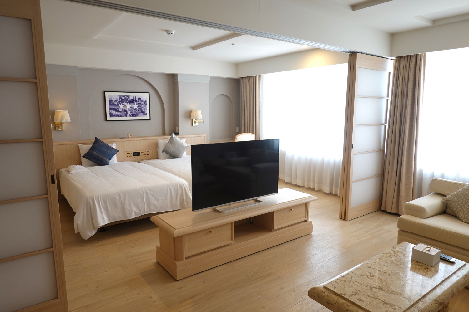 リビングとベッドルーム、バスルームが備わった広々50㎡のツインルームです。