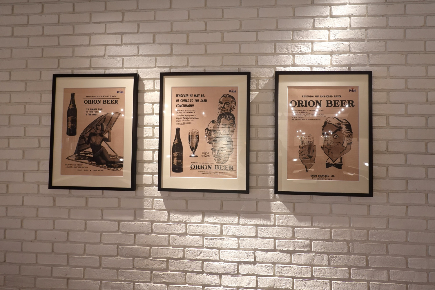 キッチンがガラス越しに見えるお部屋や個室もあるので、グループや大家族でも楽しめます。壁には昔の写真やポスターが展示されており、オリオンビールの歴史が感じられますね♪