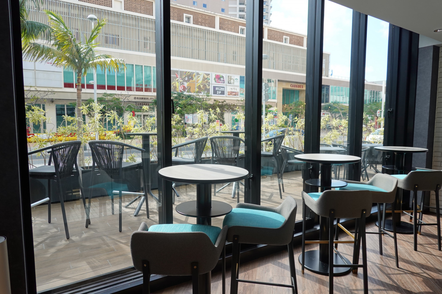 国際通り沿いのスペースには、バーエリアがあります!^^オリオンビールさんが手掛けるホテルならではの空間ですね。営業時間は10:00~23:00で、もちろんランチタイムも利用できます(*'▽')