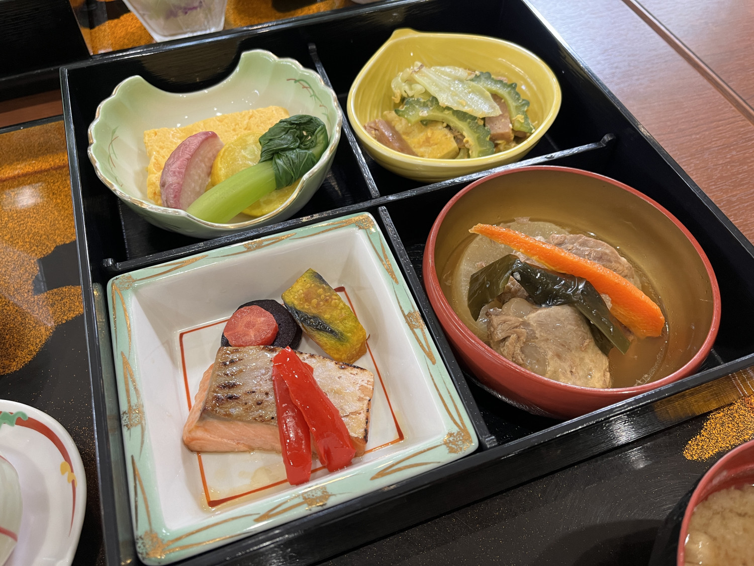 お膳には種類豊富な料理が並んでいてどれから食べようか迷っちゃいます(>_<)どの料理も沖縄の素材を活かした味付けでとってもおいしかったです♪ボリューム満点でお腹いっぱいになりました!