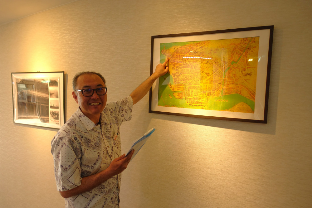 ホテルは、地下1階、地上3階建てで、内部には総ヒノキ、外部はモルタル、屋根は赤瓦、門には勝連町から持ってきたトラバージンという石材が使われました。また、当時最先端だった電気式冷蔵庫なども設置され、ホテルの製作費は当時のお金で30万ほど(現在では1億500万ほど)掛かり、県知事からも支援をいただいていました。