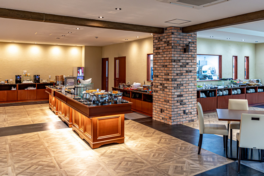 レストランでは、沖縄県産の食材をふんだんに使った朝食料理をビッフェ形式で楽しむことができます☆彡
