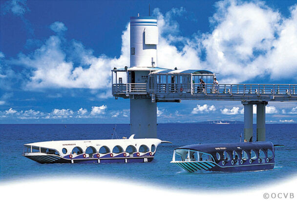 公園内には沖縄本島で唯一の海中展望塔があり、自然の中で生きるサンゴ礁やお魚がいる海の中を覗くことができます。また、周辺の海を回遊するグラスボートに乗ることもできるので、泳がなくても海を楽しむことができるんですよ~!(≧▽≦)